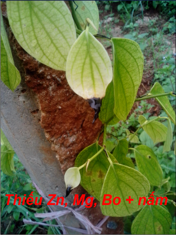 Với bệnh vàng lá do dư axit cây sẽ vàng đồng loạt. Bón vôi, hạ phèn bổ sung khoáng cây sẽ xanh lại thấy rõ. Bệnh này rất dể nhầm lẫn với nấm bệnh và tuyến trùng. Chỉ cần một tờ giấy quì tím là bà con ta đã có thể tự đo độ pH đất được. Cây tiêu nó có đặc tính rất thú vị. Có lẽ nhiều người sẽ không để ý. Nhưng với đam mê của tôi, những thay đổi dù là nhỏ nhất với cây tiêu cũng không thể thoát khỏi tầm mắt của tôi. Ở đây tôi muốn nói tới đó là giống tiêu. Bà con ta thường trồng rất nhiều giống tiêu. Có giống tím nhạt có giống tím rịm, có giống đọt xanh, có giống đọt trắng… Nhưng giống tốt có khả năng kháng bệnh, cho năng xuất cao, thường là giống đọt tím đậm. Đặc tính đọt của cây hồ tiêu nó cũng thay đổi màu sắc theo độ pH. Đây là điều tôi khám phá được cũng do quan sát hồ tiêu trong vườn. Chắc bà con cũng biết sự thay đổi màu sắc hoa của cây Cẩm Tú, hay sự thay đổi màu của quì tím. Cây hồ tiêu cũng thế.